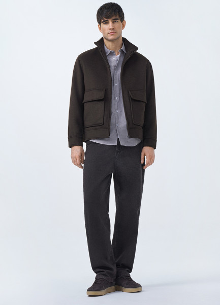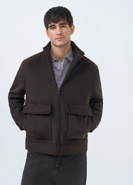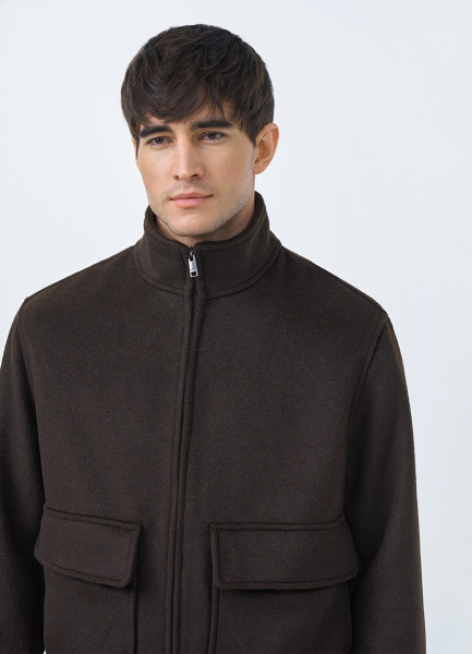 Куртка из пальтовой ткани с накладными карманами, Коричневый