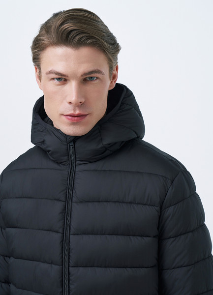 Утеплённая куртка с капюшоном, Черный