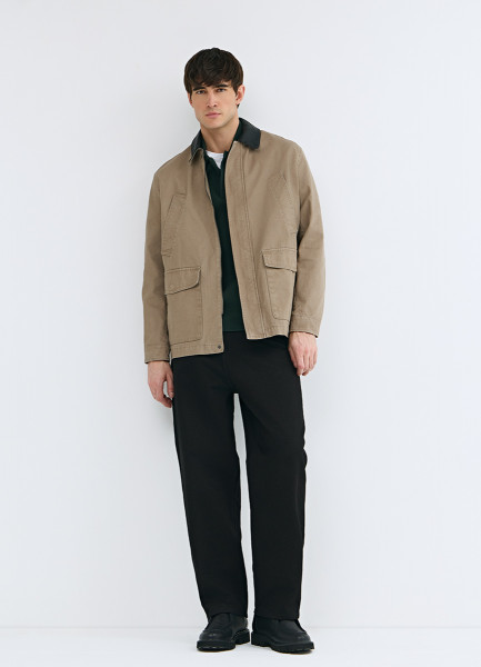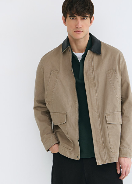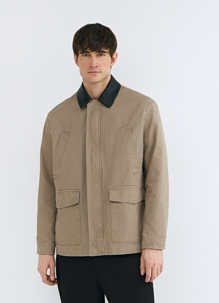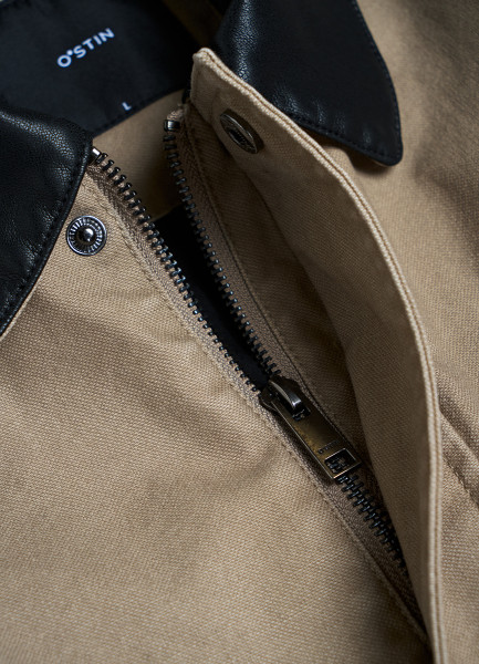 Куртка с контрастным воротником, Бежевый