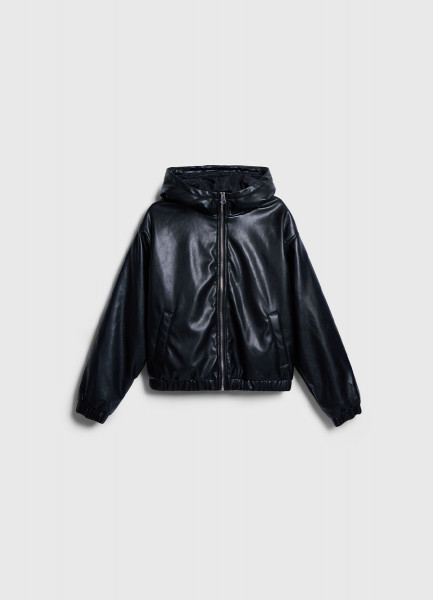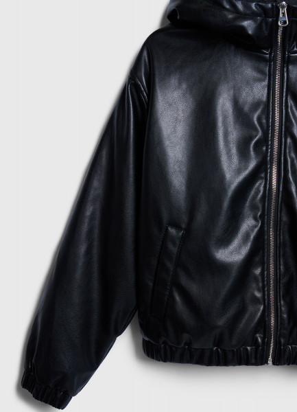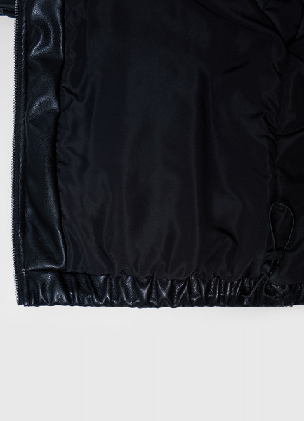 Дублёнка из искусственной кожи с мехом для девочек, Черный
