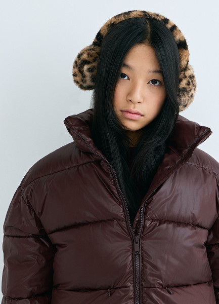 Дублёнка из искусственной кожи с мехом для девочек, Черный