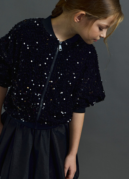 Бомбер из велюра с пайетками для девочек, Черный