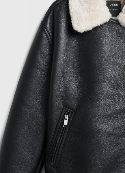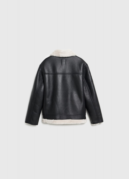 Дублёнка из искусственной кожи с мехом для девочек, Черный