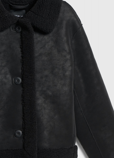 Дублёнка из искусственной кожи с мехом для девочек, Черный
