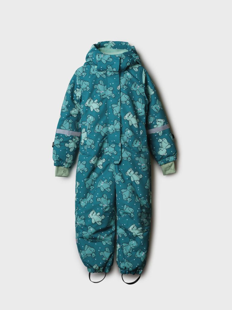 Комбинезон выполнен из прочных материалов с мембраной, что делает его водонепроницаемым и ветрозащитным, при этом позволяя коже дышать. Флисовая подкладка добавляет мягкости и тепла, обеспечивая комфорт в холодные дни. Съемный капюшон на резинке легко регулируется и защищает голову от ветра и осадков.