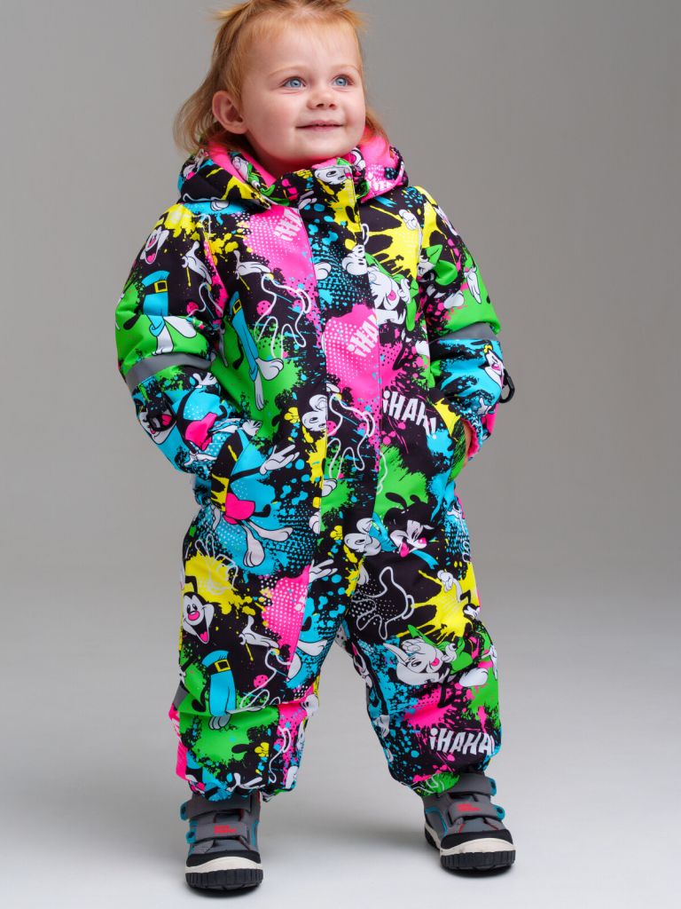 Мембранный материал делает этот яркий и модный комбинезон непромокаемым: мембрана не пропускает влагу снаружи, но выводит её изнутри, что крайне важно во время подвижных игр и занятий спортом.