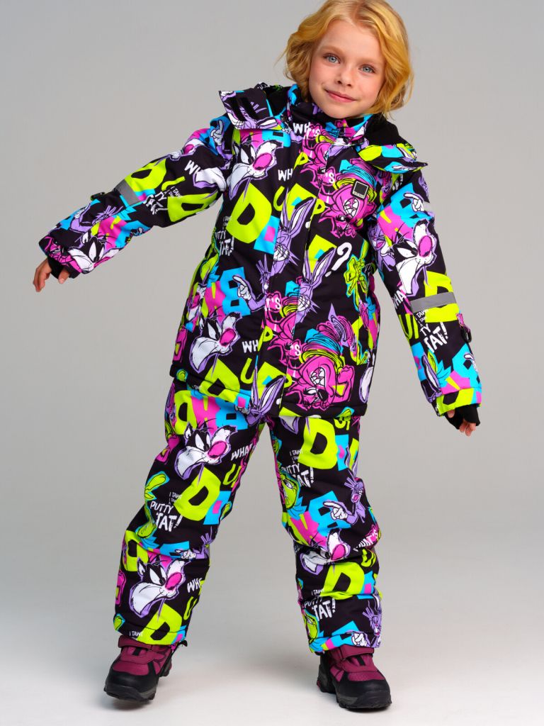 Мембранный материал делает этот яркий и модный комбинезон непромокаемым: мембрана не пропускает влагу снаружи, но выводит её изнутри, что крайне важно во время подвижных игр и занятий спортом.