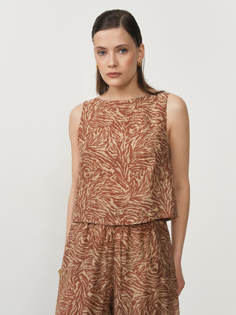 Эффектный женский топ из экологичного лиоцелла с оригинальным принтом – яркое дополнение современного гардероба для тех, кто ценит индивидуальность и комфорт. Этот инновационный материал, получаемый из древесной целлюлозы эвкалипта, отличается шелковистой текстурой, легкостью и отличной драпируемостью, создающей мягкие и естественные линии силуэта. Лиоцелл сочетает лучшие свойства натуральных тканей – мягкость и воздухопроницаемость с повышенной прочностью и долговечностью.Свободный крой с продуманными пропорциями обеспечивает непринужденную элегантность и комфорт в течение всего дня, не стесняя движений. Выразительный принт делает этот топ ключевым элементом образа, мгновенно привлекающим внимание и подчеркивающим индивидуальность своей обладательницы. Модель универсальна в сочетаниях – она одинаково хорошо смотрится с джинсами, шортами, юбками или брюками из той же коллекции.Лиоцелл обладает исключительными гигиеническими свойствами – отлично пропускает воздух, эффективно отводит влагу и обладает естественной антибактериальной защитой, что особенно ценно в теплую погоду. Материал не электризуется, не вызывает раздражения даже на чувствительной коже и с каждой стиркой становится только мягче и комфортнее.Этот стильный и экологичный топ станет любимым предметом вашего гардероба, идеально подходящим для создания ярких повседневных образов и подчеркивающим ваш безупречный вкус.