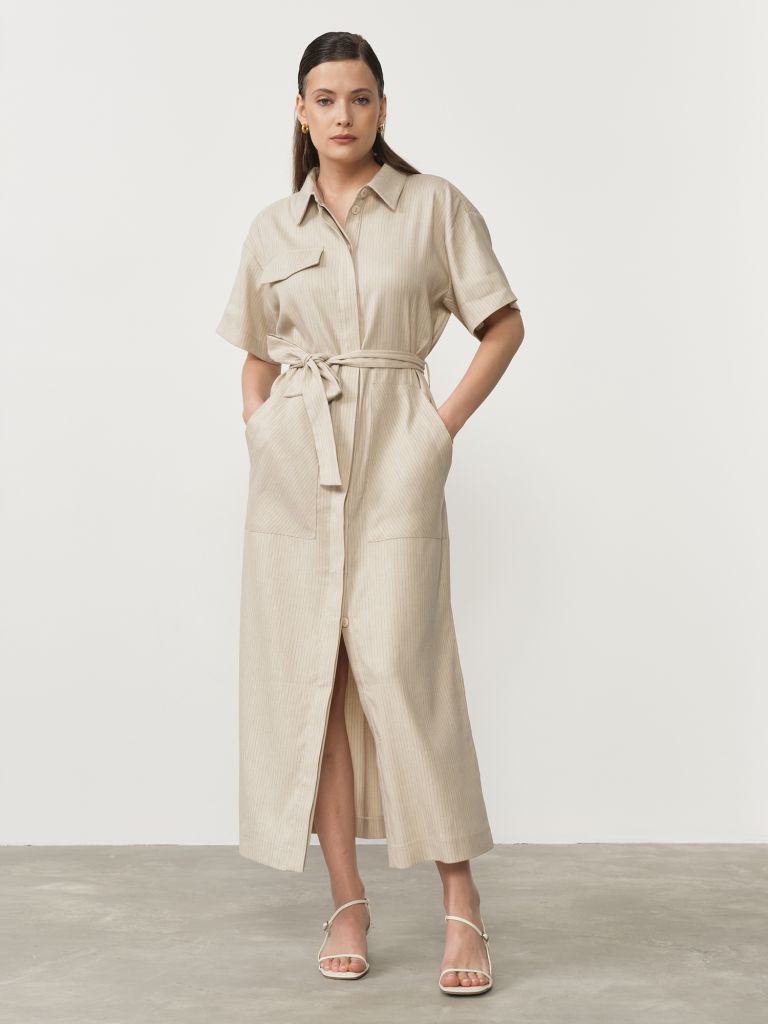 Изысканное платье из натурального льна в благородном бежевом оттенке – воплощение летней элегантности и природной гармонии. Этот премиальный природный материал обладает исключительными свойствами, особенно ценными в теплую погоду: превосходная воздухопроницаемость, способность эффективно отводить влагу от тела и обеспечивать естественное охлаждение даже в самые жаркие дни. Лен также гипоаллергенен, что делает платье идеальным выбором для чувствительной кожи.Лаконичный крой с чистыми линиями создает утонченный и женственный силуэт, который элегантно подчеркивает достоинства фигуры. Платье имеет продуманные пропорции и свободную посадку, обеспечивающую непринужденную элегантность и абсолютный комфорт при движении. Универсальный бежевый цвет делает это платье необычайно многогранным в плане сочетаемости – оно становится прекрасной основой как для ярких аксессуаров, так и для сдержанных дополнений в натуральных оттенках.Натуральный лен с характерной благородной фактурой и матовым блеском придает особый шарм этой модели, подчеркивая природное происхождение материала. С каждой стиркой лен становится только мягче и комфортнее, сохраняя при этом форму и презентабельный вид. Это платье станет идеальным компаньоном для летних прогулок, отпуска или городских будней, даря вам чувство комфорта и уверенности в своей элегантности.Размерная сетка