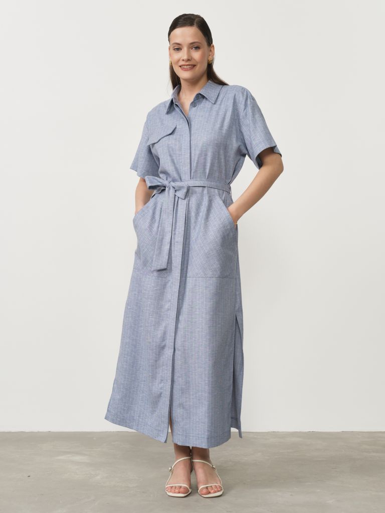 Элегантное платье из 100% натурального льна в глубоком синем оттенке – воплощение летней свежести и изысканной простоты. Этот благородный природный материал, признанный за свои исключительные свойства, обеспечивает непревзойденный комфорт даже в самые жаркие дни благодаря уникальной способности отводить влагу и создавать естественную вентиляцию. Лен обладает природным термоэффектом, сохраняя прохладу в зной и согревая в прохладу, что делает платье универсальным для различных погодных условий.Лаконичный крой с чистыми линиями создает утонченный и женственный силуэт, подчеркивая достоинства фигуры. Платье имеет продуманные пропорции и свободную посадку, обеспечивающую свободу движений и непринужденную элегантность. Насыщенный синий цвет придает модели особую глубину и выразительность, а также обладает универсальностью, позволяющей легко сочетать платье с различными аксессуарами – от соломенных сумок и сандалий для повседневных выходов до изящных туфель и ювелирных украшений для более торжественных случаев.Натуральный лен с его характерной фактурой и благородной матовостью создает особый эстетический эффект, подчеркивая природную красоту материала. С каждой стиркой лен становится только мягче и приятнее на ощупь, сохраняя при этом форму и привлекательный внешний вид. Добавьте это изысканное платье в свой летний гардероб, чтобы наслаждаться комфортом и элегантностью в каждый момент теплого сезонаРазмерная сетка