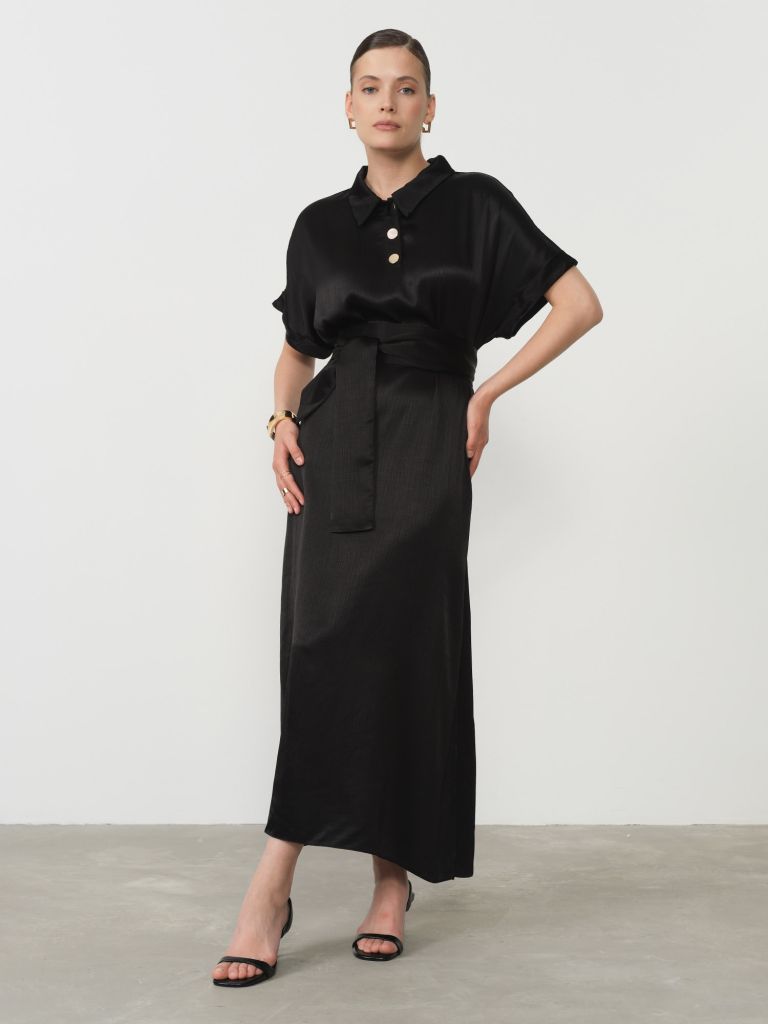Элегантное черное платье из натуральной вискозы – универсальный предмет женского гардероба, сочетающий классическую утонченность и современный комфорт. Изготовленное из премиальной вискозной ткани, это платье обладает шелковистой текстурой, мягко струящейся по фигуре и создающей женственный силуэт. Черный цвет, признанный символ вечной элегантности, делает модель максимально универсальной для любых событий – от деловых встреч до вечерних выходов.Особенность натуральной вискозы заключается в её исключительном комфорте при носке. Этот материал, произведенный из древесной целлюлозы, обладает отличной воздухопроницаемостью, позволяя коже дышать даже в течение длительного дня. Гигроскопичность вискозы обеспечивает приятное ощущение прохлады в жаркую погоду и комфортное тепло в прохладные дни, делая платье подходящим для разных сезонов.Лаконичный крой с выверенными пропорциями подчеркивает достоинства фигуры, создавая элегантный и сдержанный образ. Платье легко трансформируется из дневного в вечерний наряд с помощью аксессуаров – достаточно сменить деловые туфли на яркие каблуки и добавить броские украшения. Благодаря эластичности материала, изделие не стесняет движений и сохраняет форму на протяжении всего дня.Это платье станет настоящей инвестицией в ваш гардероб – вневременная классика, которая всегда уместна и никогда не выходит из моды. Закажите его сейчас и оцените безупречное качество натуральной вискозы уже в ближайшее время!