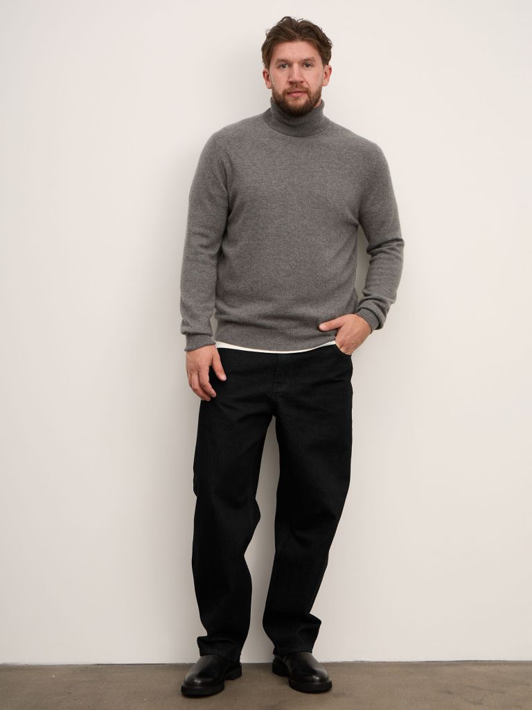 Классическая водолазка из 100% монгольского кашемира — символ спокойной элегантности и продуманного стиля. Она сочетает мягкость, лёгкость и естественную терморегуляцию, обеспечивая комфорт даже в самую холодную погоду. Тонкое кашемировое полотно приятно к телу и не вызывает раздражения, сохраняя тепло без перегрева.Как и с чем носитьВодолазка — универсальная основа мужского гардероба, подходящая как для деловых, так и для повседневных образов. Её можно носить:под пиджак или жакет — для офисного или делового стиля;с шерстяным пальто или тренчем — для городской классики;с джинсами и кожаными ботинками — для расслабленного повседневного образа;с брюками свободного кроя и кроссовками — в стиле casual smart.Серый оттенок легко сочетается с базовыми цветами: чёрным, тёмно-синим, бежевым, графитовым и молочным. Добавьте шарф из кашемира или пальто контрастного тона — и образ будет выглядеть собранным и утончённым.УходРучная стирка в холодной воде с мягким средством для шерсти или химчисткаСушить горизонтально, вдали от источников теплаНе выкручивать и не использовать сушильную машинуХранить в сложенном виде, избегая подвешиванияВодолазка из кашемира — это не просто тёплая вещь, а элемент стиля, который подчёркивает уверенность, вкус и внимание к деталям. Идеальна для тех, кто ценит комфорт и безупречное качество натуральных материалов.