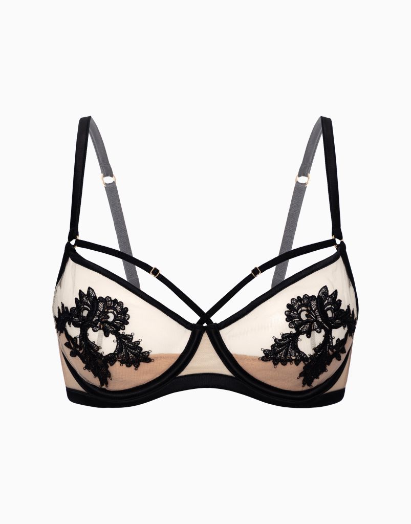 Бюстгальтер с мягкими чашками и усилителем из спонжа на стане. Верхняя часть чашек выполнена из тонких прозрачных материалов, что добавляет особую пикантность образу.