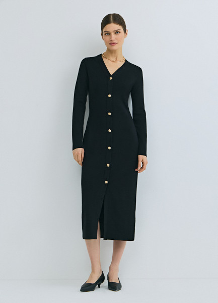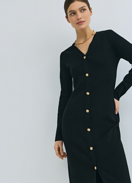 Вязаное облегающее платье, Черный