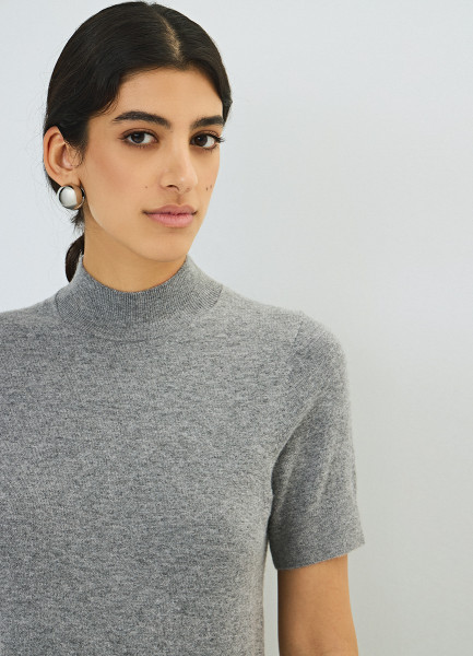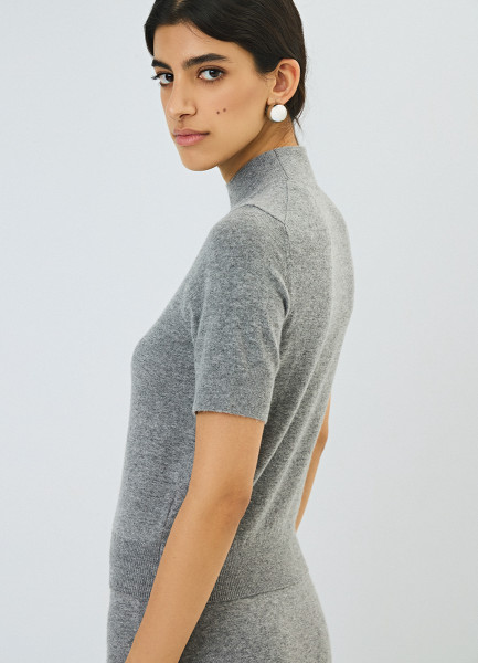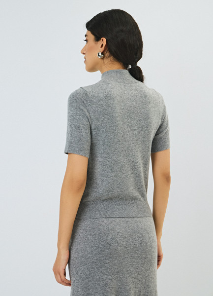 Полупрозрачный джемпер с коротким рукавом, Черный