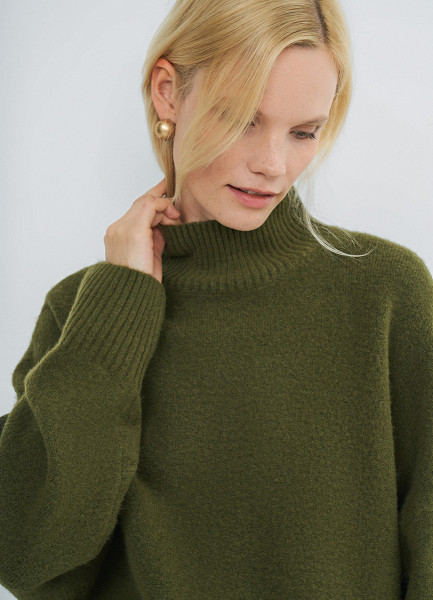 Свитер из мягкой пряжи с шерстью, Зеленый