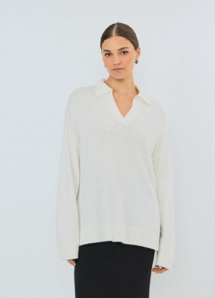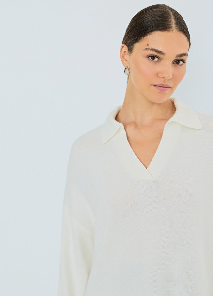 Джемпер поло из пряжи с ангорской шерстью, Белый