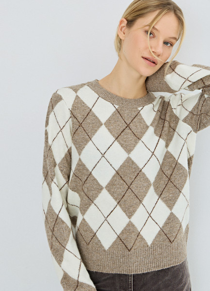 Джемпер с ромбами из пряжи с шерстью, Бежевый