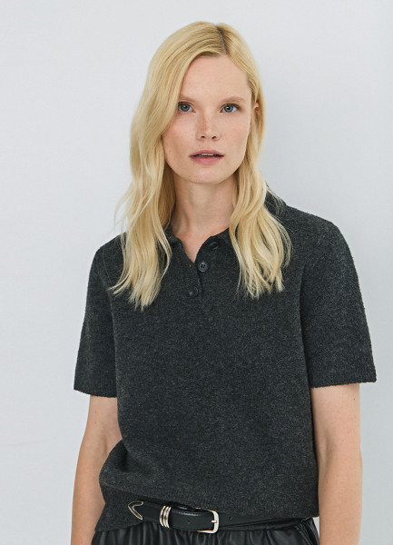 Джемпер поло из пряжи с ангорской шерстью, Серый
