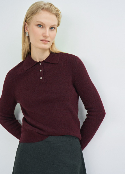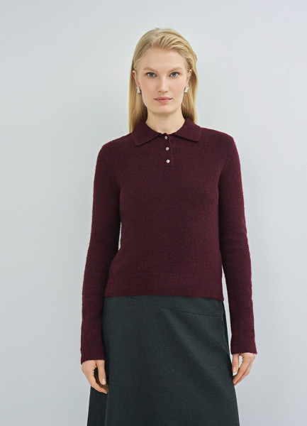Джемпер с воротником поло, Фиолетовый