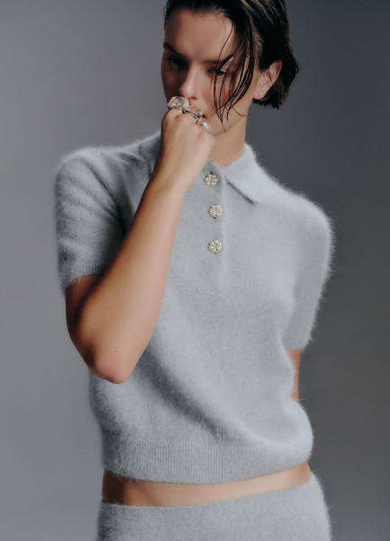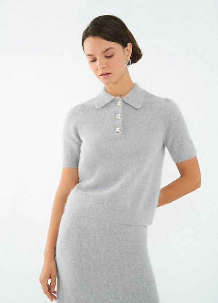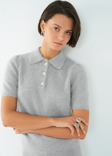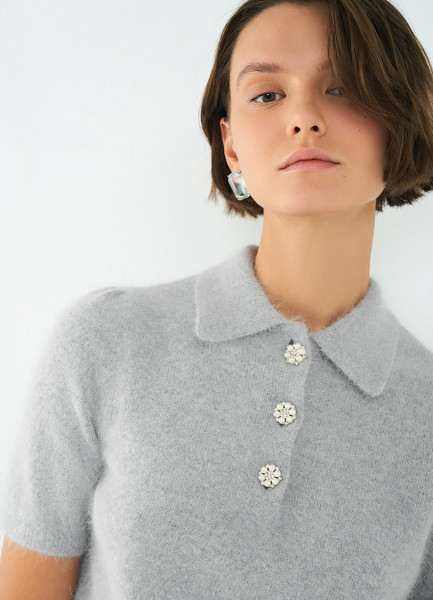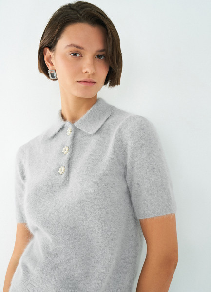 Джемпер поло из пряжи с ангорой, Серый