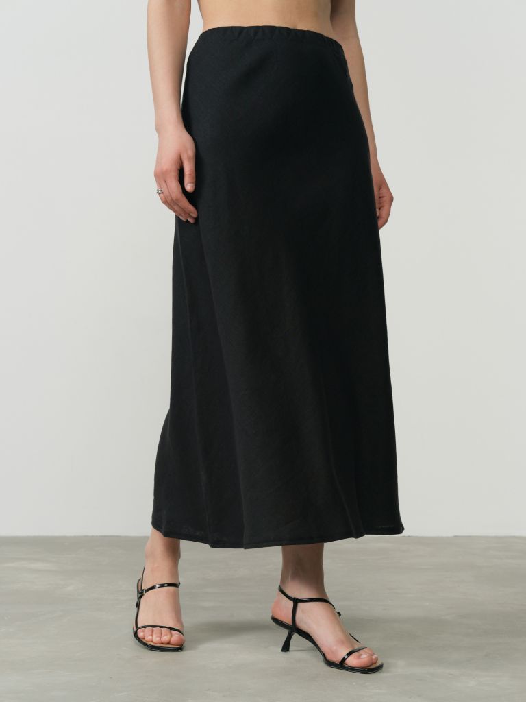 Эта женская льняная юбка в черном цвете станет отличным дополнением к вашему гардеробу. Изготовленная из натурального льна, она обеспечивает комфорт в жаркую погоду, благодаря своей воздухопроницаемости и легкости. Удобная длина миди делает ее универсальной для разных случаев, будь то повседневный выход или деловая встреча. Эластичная талия обеспечивает идеальную посадку и комфорт в течение всего дня. Лаконичный дизайн без лишних деталей делает эту юбку идеальной базовой вещью, которую легко сочетать с любыми топами и обувью. Преимущества льняной ткани включают ее долговечность и стойкость к износу, что делает эту юбку отличным выбором на долгое время.