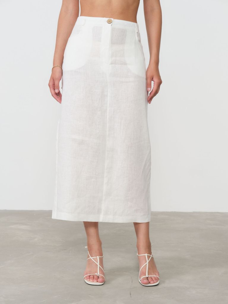 Изысканная льняная юбка в нежном оттенке айвори – воплощение летней элегантности и природного комфорта. Выполненная из премиального 100% натурального льна, она обладает исключительными терморегулирующими свойствами, которые позволяют коже дышать даже в знойные дни. Юбка отличается классическим А-силуэтом средней длины, подчеркивающим женственные линии фигуры. Высокая посадка на талии и аккуратная застежка создают элегантный и структурированный образ. Элегантный оттенок айвори предоставляет широкие возможности для комбинирования с различными цветами и фактурами, делая юбку универсальным элементом гардероба. Функциональность этой модели заключается в её невероятной универсальности – юбка идеально вписывается как в повседневные, так и в деловые образы. Комбинируйте её с льняными блузами для создания цельного образа в стиле total white, добавляйте яркие топы для контрастных летних луков или сочетайте с трикотажем в прохладные вечера. Пополните свой летний гардероб этой элегантной льняной юбкой цвета айвори и откройте для себя непревзойденное удобство натуральных материалов в сочетании с изысканным стилем. Создавайте безупречные образы для любого случая с этим универсальным предметом гардероба!Размерная сетка