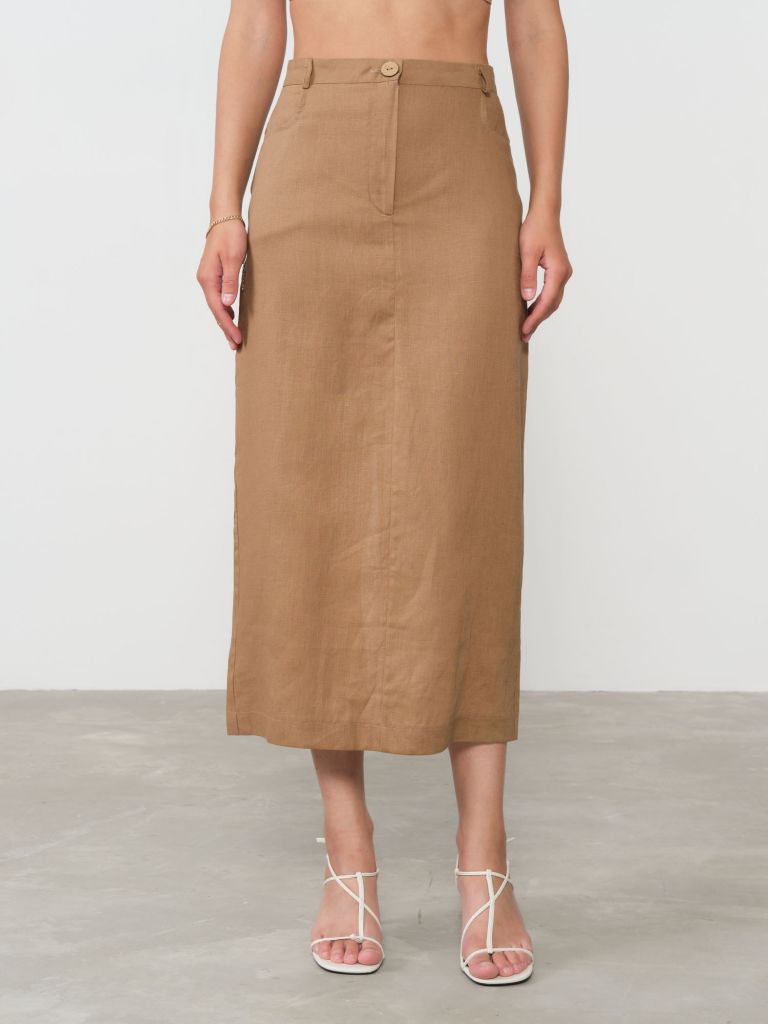 Стильная льняная юбка в универсальном оттенке кэмел – идеальное решение для создания элегантных образов в любой сезон. Изготовленная из 100% натурального льна высшего качества, она обладает непревзойденными дышащими свойствами, что особенно ценно в теплое время года. Классический А-силуэт и средняя длина юбки подчеркивают женственность фигуры, делая акцент на талии и визуально удлиняя ноги. Высокая посадка и элегантный крой создают утонченный силуэт, подходящий для разных типов фигуры. Благородный оттенок кэмел – настоящая находка для базового гардероба, позволяющая создавать гармоничные сочетания как с нейтральными, так и с яркими цветами. Функциональность этой юбки впечатляет – она легко интегрируется в офисный гардероб в комбинации с блузами и жакетами, отлично смотрится в повседневных образах с футболками и топами, а также может стать основой для вечернего наряда при правильном подборе аксессуаров. Обновите свой гардероб этой универсальной льняной юбкой в оттенке кэмел и откройте для себя комфорт натуральных материалов в сочетании с безупречным стилем. Создавайте разнообразные образы для любого случая с этим многофункциональным предметом одежды!Размерная сетка