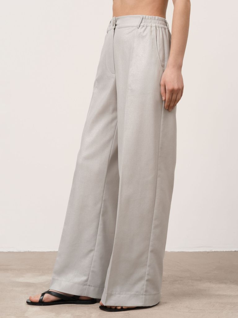 Изысканный комфорт и элегантность в каждом движении — женские брюки из льна с вискозой в благородном серебристом оттенке станут идеальным выбором для теплого сезона. Это сочетание природной легкости и современного стиля для женщин, ценящих качество и комфорт в одежде.Уникальная комбинация льна (70%) и вискозы (30%) создает ткань, объединяющую лучшие свойства обоих материалов. Лен обеспечивает исключительную воздухопроницаемость, позволяя коже дышать даже в самые жаркие дни, а вискоза добавляет элегантную мягкость и улучшает драпировку, предотвращая излишнюю сминаемость. Эта гипоаллергенная ткань приятна к телу и не вызывает раздражения даже на чувствительной коже.Стильный серебристый оттенок придает брюкам особую изысканность и универсальность — он прекрасно сочетается как с яркими, так и с нейтральными цветами вашего гардероба. Продуманный крой с комфортной посадкой на талии подчеркивает силуэт, а свободный фасон обеспечивает непревзойденное удобство на протяжении всего дня.Выбирая натуральные ткани, вы инвестируете в комфорт и долговечность. Эти брюки не только подарят вам ощущение прохлады в жаркую погоду, но и станут надежным компаньоном на долгие годы. Позвольте себе насладиться изысканным сочетанием стиля, комфорта и экологичности — с этими серебристыми льняными брюками каждый день будет особенным.Размерная сетка