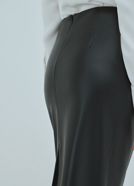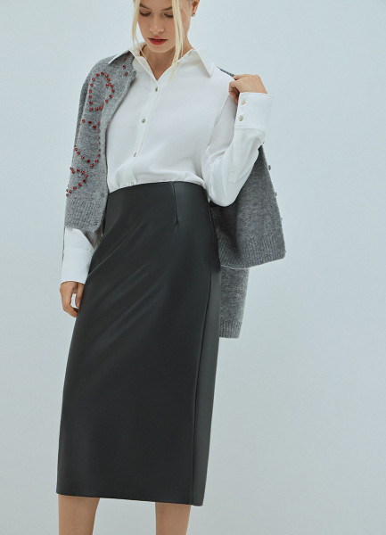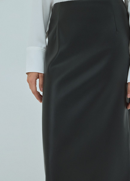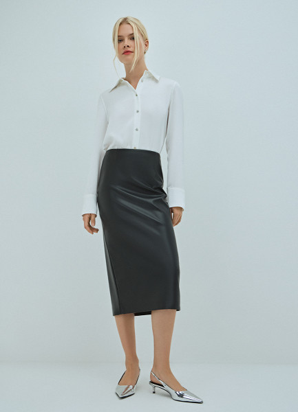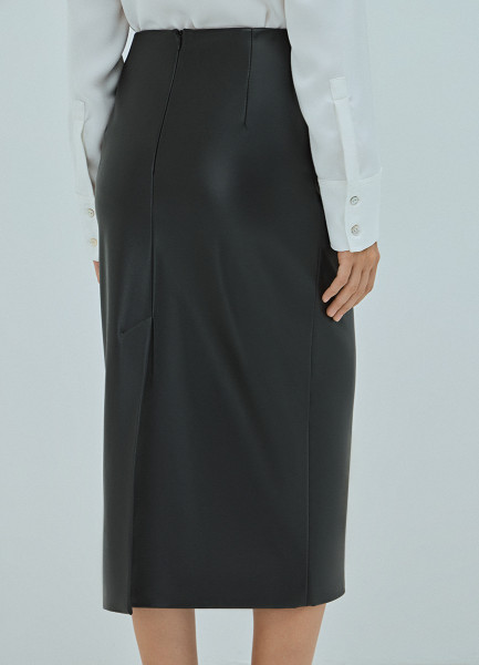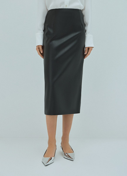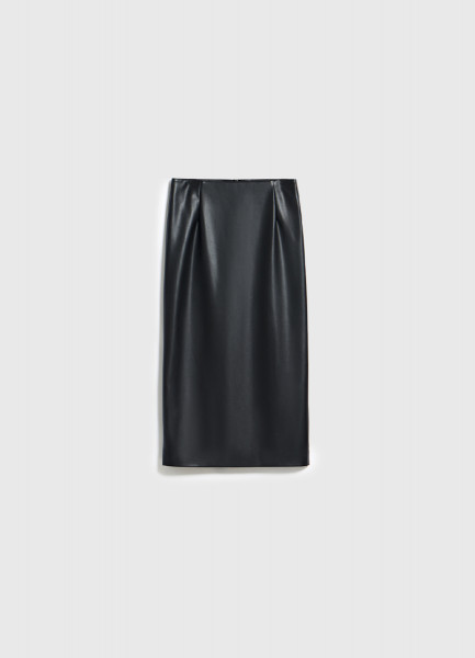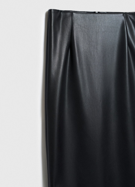 Прямая юбка миди из искусственной кожи, Черный