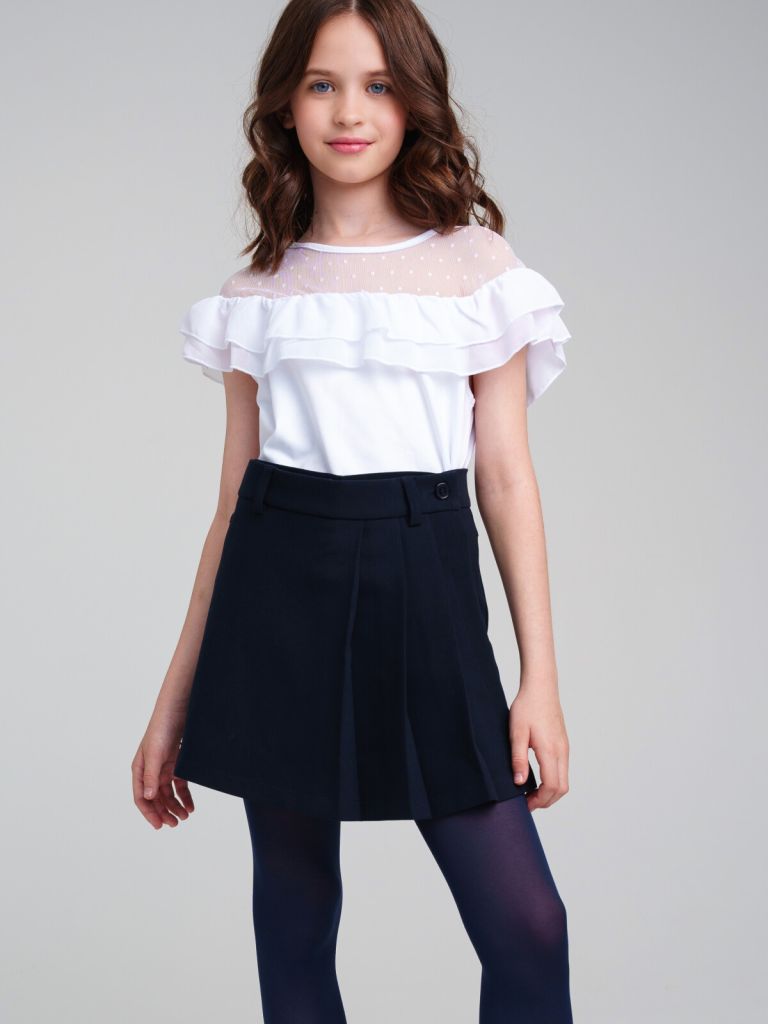 Школьная синяя юбка-шорты для девочки подростка. Юбка-шорты выполнены из ткани non-iron, которая не требует глажки после стирки, и не сминаются в течение дня, что так важно для школы. Лаконичный дизайн делает шорты элегантными, идеально подходящими и к повседневному, и к нарядному образу девочки. Юбка-шорты с застежкой на молнию и пуговицу отлично подойдут в школу на теплое время года. Внутренняя утяжка по талии.
