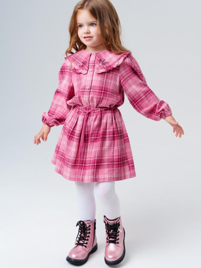 Сочетайте юбку-шорты с клетчатой блузкой PlayToday в тон или с базовой футболкой. Для прохладной погоды добавьте колготки и кардиган — получится уютный комплект для детского сада и прогулок.