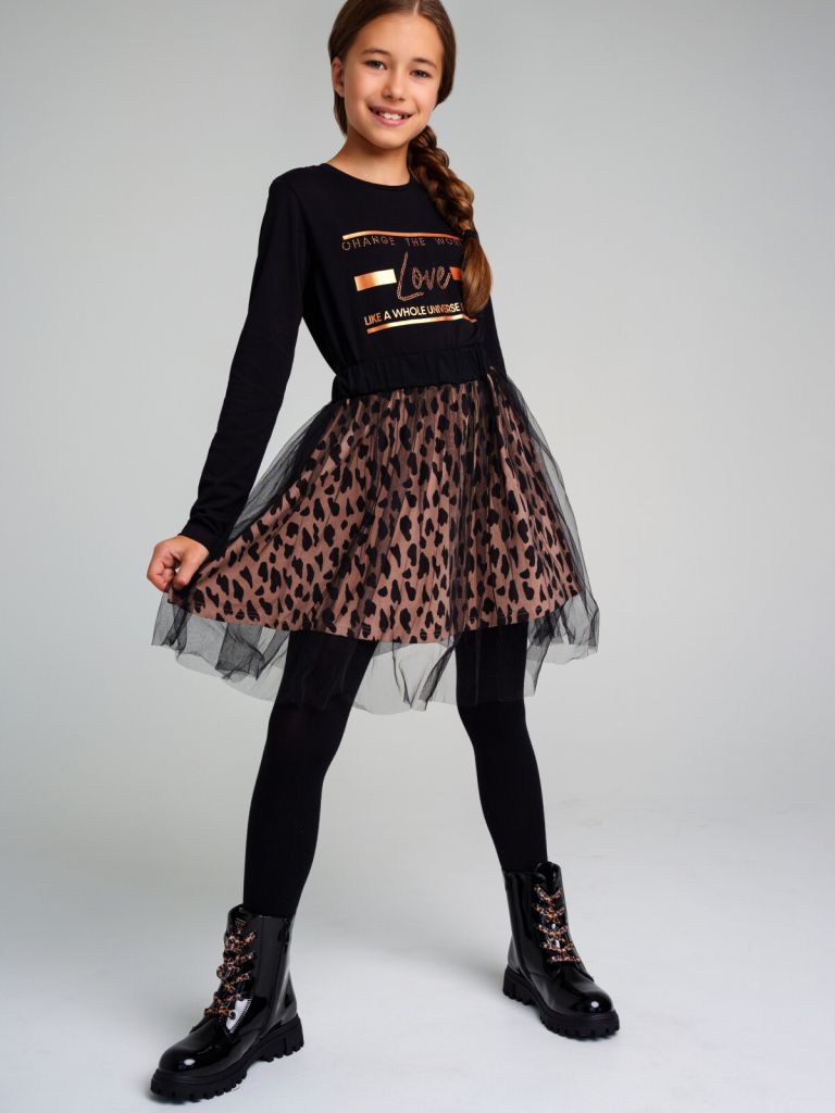 Юбка с верхом из сетки. Подкладка из трикотажного полотна. Высокое содержание хлопка 95%. Благодаря наличию эластана в составе ткани, изделие проще в уходе и держит форму. Резинка по талии.