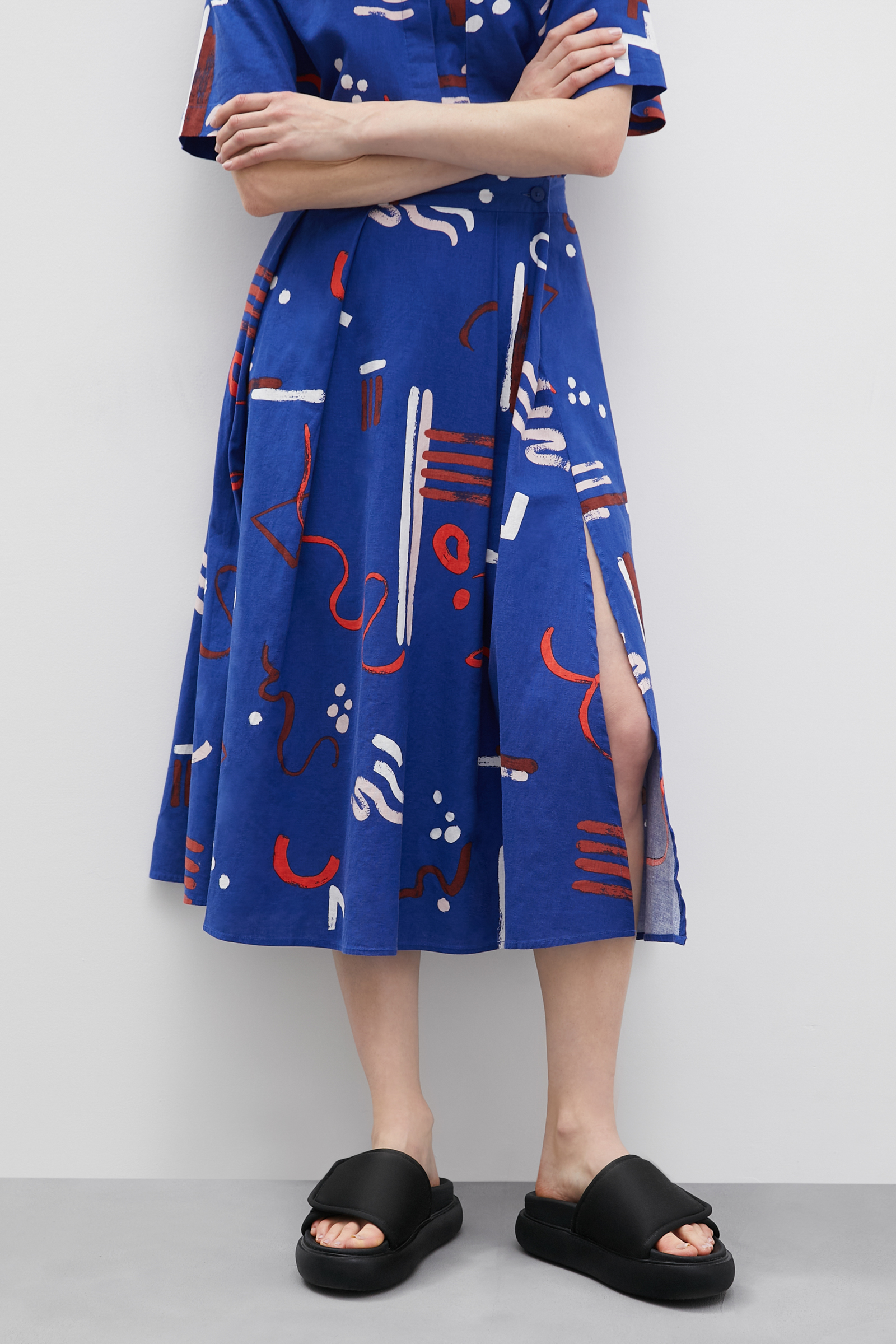 Юбка А-силуэта с поясом на резинке и боковыми разрезами