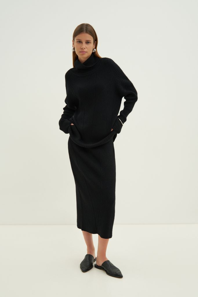 Юбка А-силуэта с поясом на резинке и боковыми разрезами