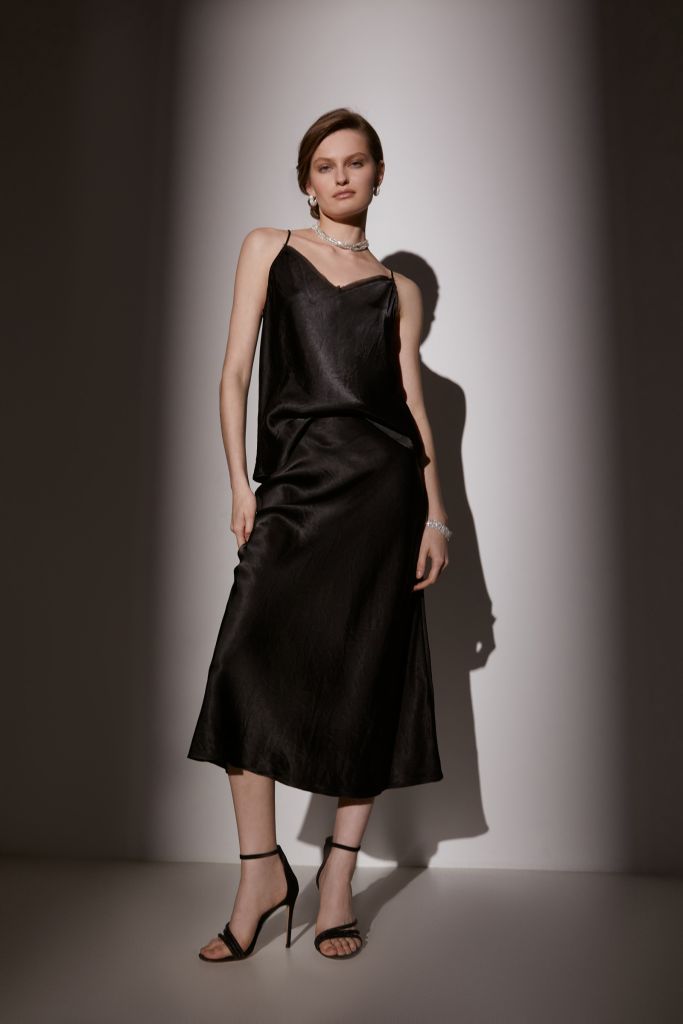 Юбка А-силуэта с поясом на резинке и боковыми разрезами