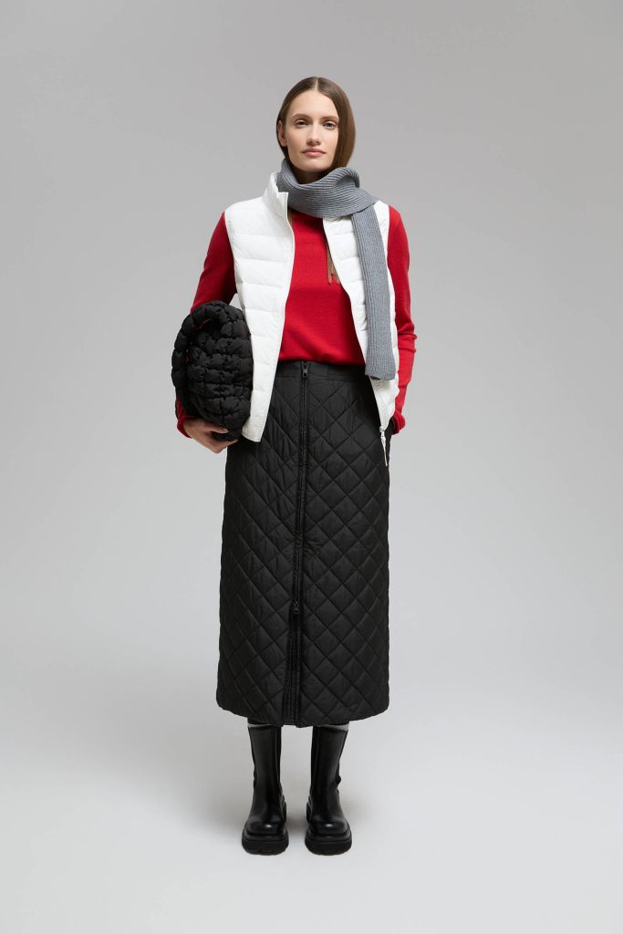 Утепленная стеганая юбка миди
