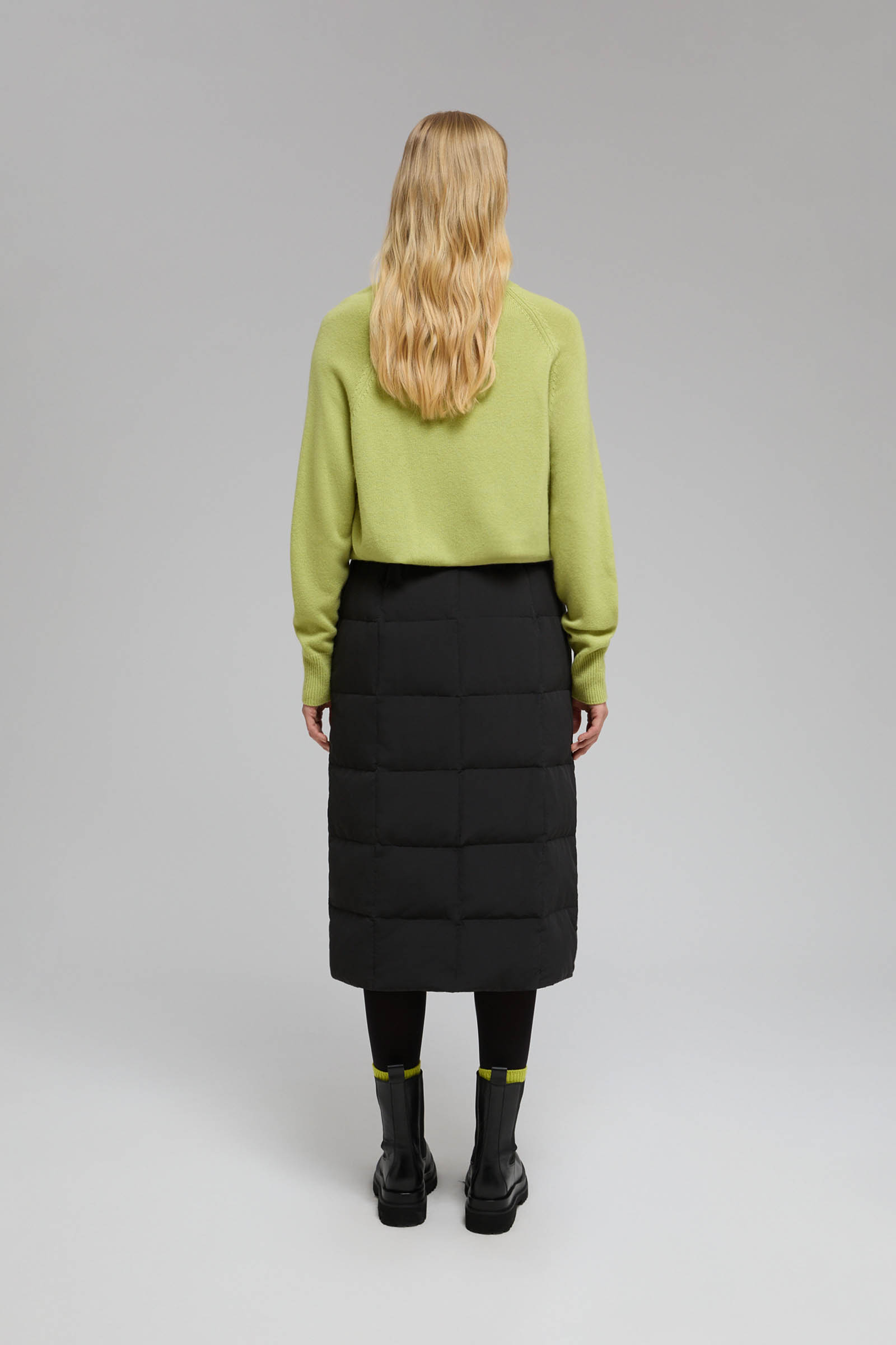 Утепленная стеганая юбка миди