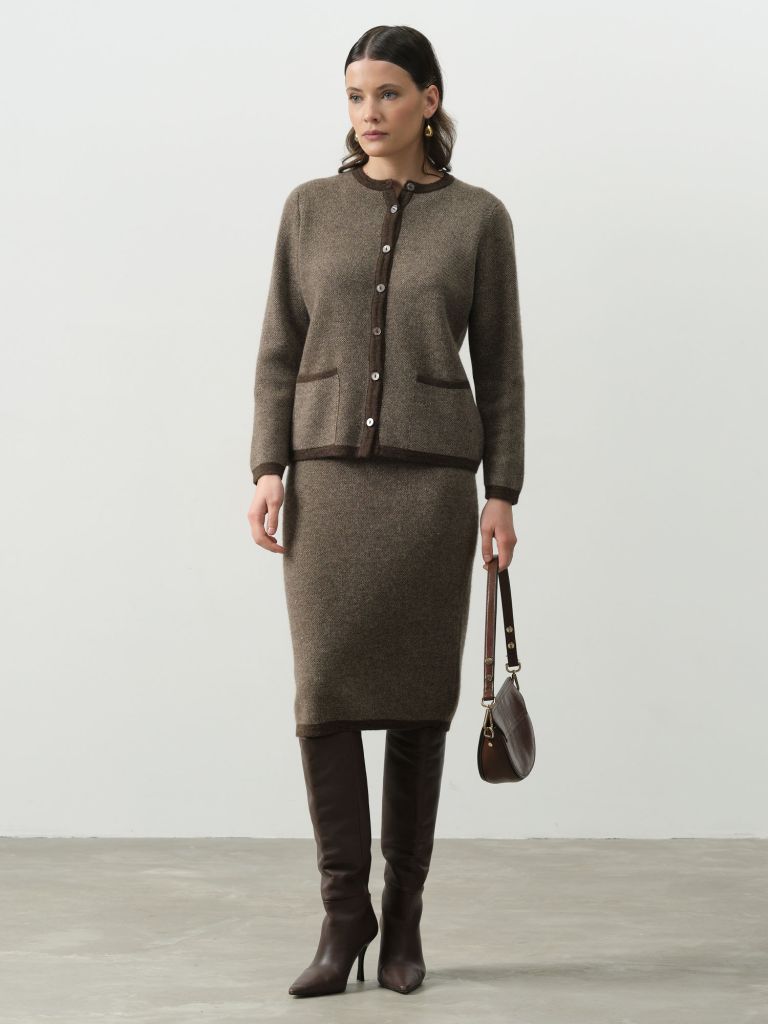 Эта юбка-карандаш из шерсти — идеальный выбор для создания стильного и элегантного образа в прохладное время года. Изготовленная из мягкой и теплой шерсти, она обеспечивает комфорт и защиту от холода. Классический коричневый оттенок и лаконичный крой делают юбку универсальной, легко сочетаемой с различными элементами гардероба, будь то деловой или повседневный стиль. Плотная ткань отлично держит форму, подчеркивая фигуру и создавая утонченный силуэт. Юбка идеально подходит как для офиса, так и для вечерних выходов, добавляя образу нотку строгости и женственности. Эта модель станет незаменимой в вашем гардеробе, даря тепло и стиль в каждый день. Внимание: изделие маломерит!Размерная сетка для одежды1 Длина изделия,см