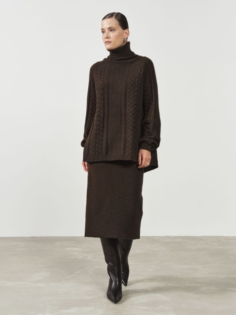 Эта юбка миди из пуха яка — настоящий must-have для холодного времени года. Изготовленная из натурального пуха яка, она сочетает в себе мягкость, тепло и непревзойденный комфорт. Гладкая текстура и глубокий коричневый цвет придают юбке элегантный и утонченный вид, который подойдет как для делового стиля, так и для повседневного образа. Плотная ткань идеально облегает фигуру, подчеркивая женственные формы, при этом обеспечивая свободу движений. Эта юбка станет незаменимой частью вашего гардероба, даря тепло и стиль даже в самые холодные дни.