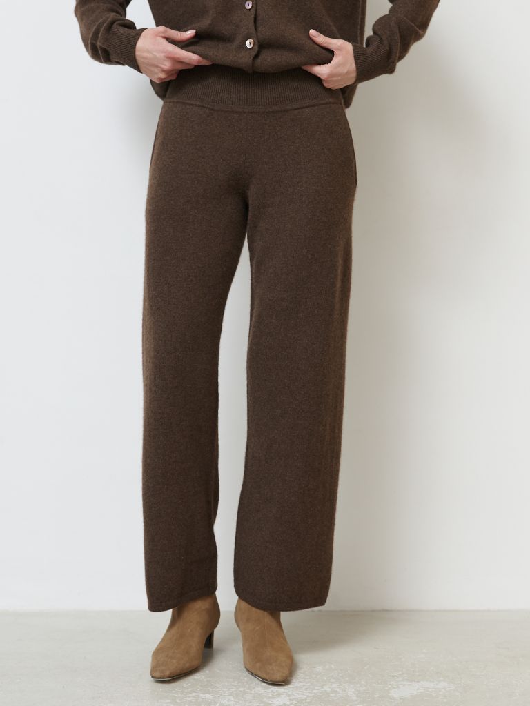 Эти брюки из пуха яка коричневого цвета — воплощение комфорта и тепла для холодного сезона. Мягкий и приятный на ощупь материал из пуха яка обеспечивает отличную терморегуляцию и защиту от холода, оставаясь при этом дышащим. Брюки выполнены в прямом крое, что обеспечивает свободу движений и стильный внешний вид. Эластичный пояс комфортно сидит на талии, не стягивая и не вызывая дискомфорта. Идеальный выбор для создания повседневных и уютных образов в сочетании с любимыми свитерами или кардиганами.