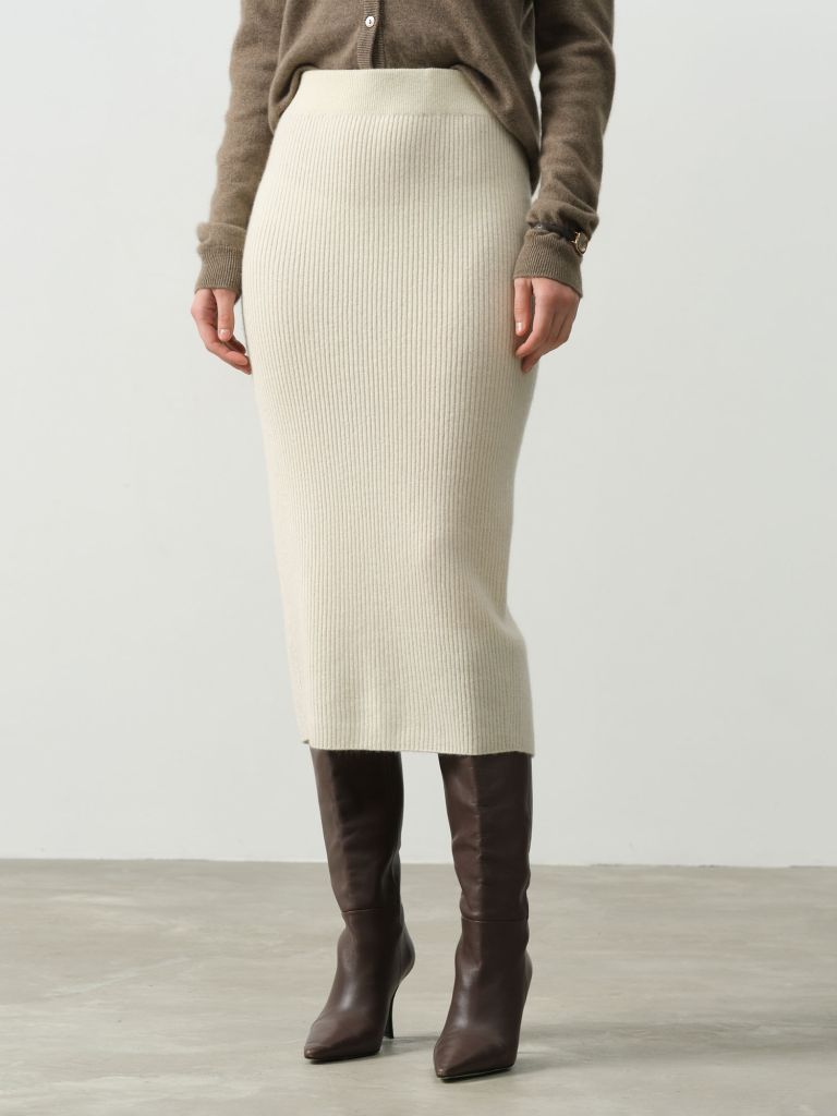 Кашемировая юбка в нежном сливочном оттенке — элегантность и комфорт в одном изделии. Мягкая и приятная к телу, идеально садится по фигуре. Универсальный фасон позволяет сочетать с разными стилями. Идеальный выбор для осенне-зимнего сезона.
