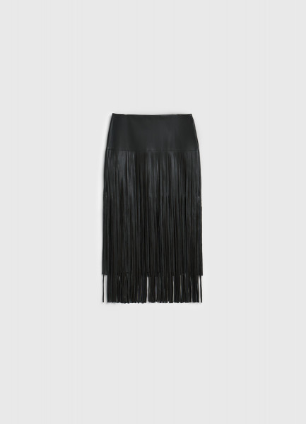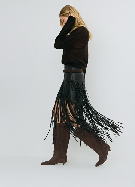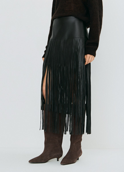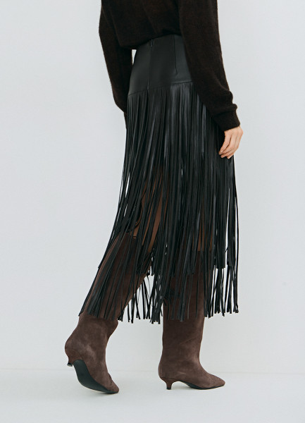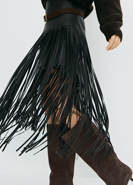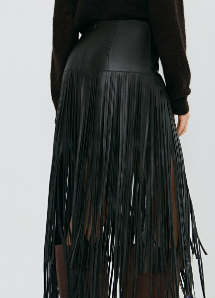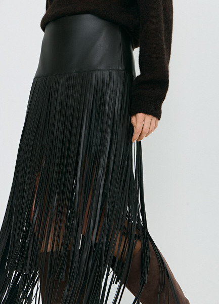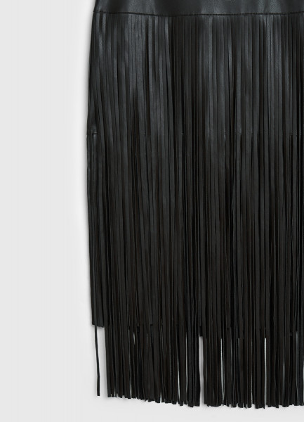 Мини-юбка из искусственной кожи с бахромой, Коричневый