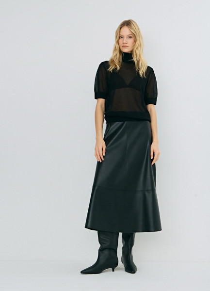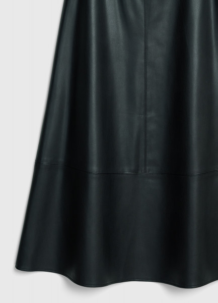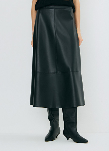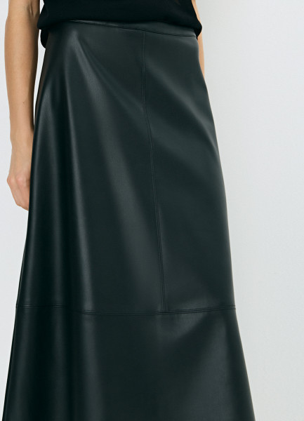 Юбка миди А-силуэта из искусственной кожи, Черный