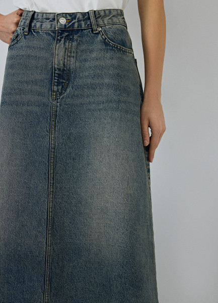 Прямая юбка с эффектом стирки, Серый