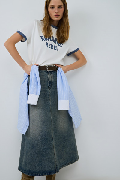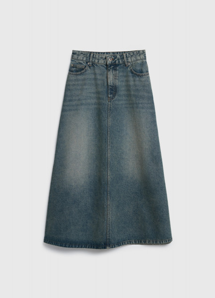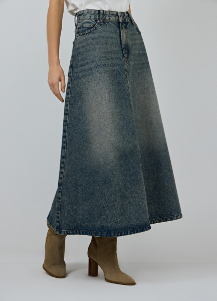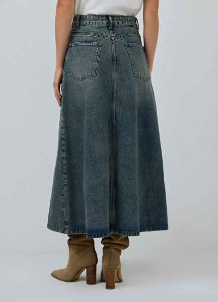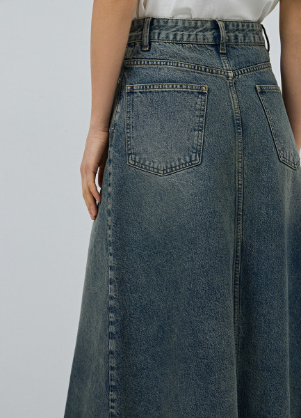 Расклёшенная джинсовая юбка миди, Синий