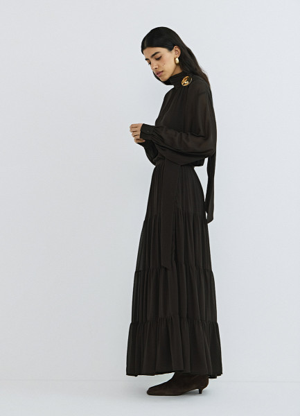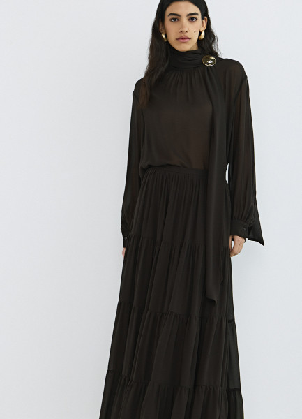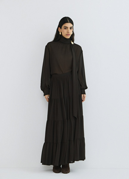 Юбка макси из шифона, Коричневый