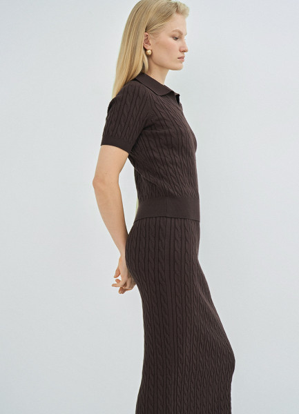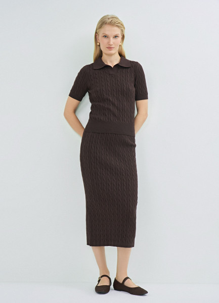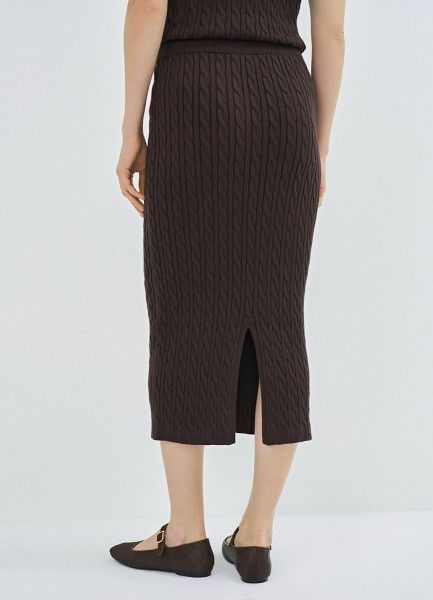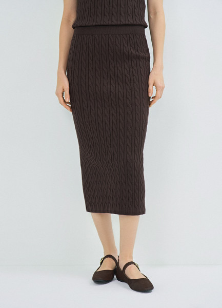 Прямая трикотажная юбка, Коричневый