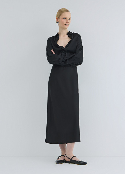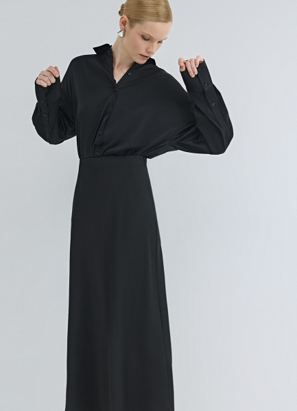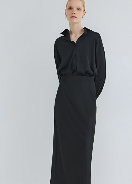 Атласная юбка миди А-силуэта, Черный