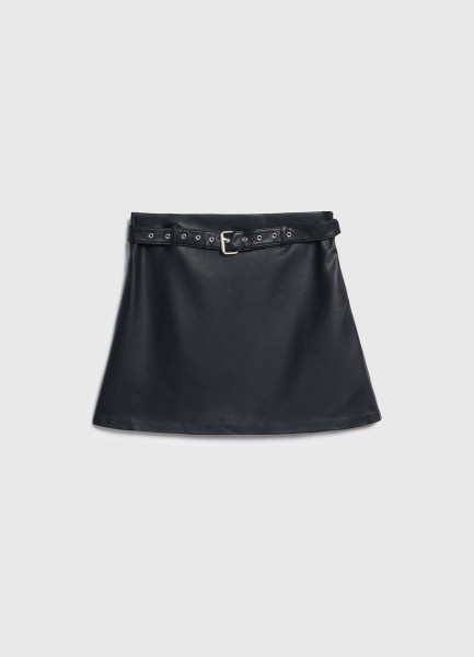 Мини-юбка из искусственной кожи для девочек, Черный